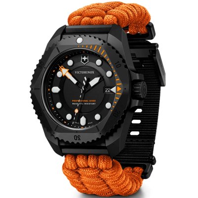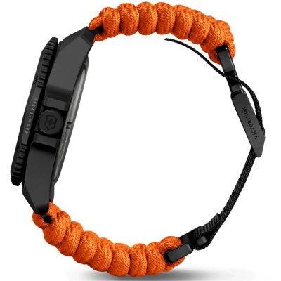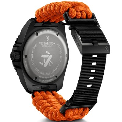 Diese Victorinox Uhr hat ein Titan Gehäuse mit einem Durchmesser von 43 mm und ist mit einem Armband aus Paracord versehen. In der Uhr arbeitet ein Ronda Uhrwerk. Das Glas der Uhr besteht aus Einfaches reflektionsfreies Saphirglas - Glas.