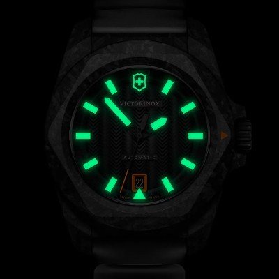 Diese Victorinox Uhr hat ein Carbon Gehäuse mit einem Durchmesser von 41 mm und ist mit einem Armband aus Kautschuk versehen. In der Uhr arbeitet ein Sellita Uhrwerk. Das Glas der Uhr besteht aus Sapphir - Glas.