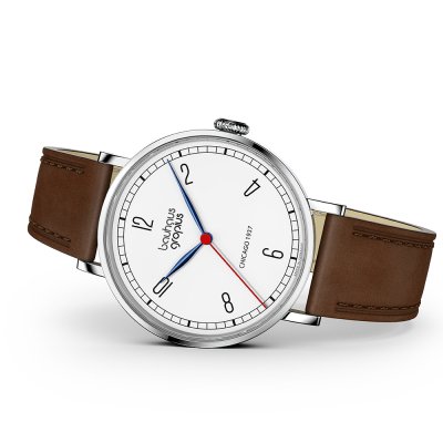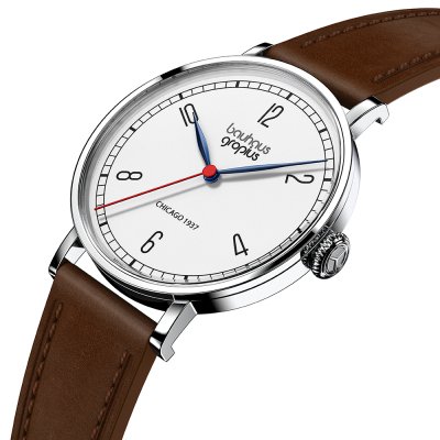 Diese Walter Gropius Uhr hat ein Edelstahl Gehäuse mit einem Durchmesser von 38 mm und ist mit einem Armband aus Leder versehen. In der Uhr arbeitet ein Miyota Uhrwerk. Das Glas der Uhr besteht aus Doppel antireflex Saphirglas - Glas.