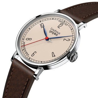 Diese Walter Gropius Uhr hat ein Edelstahl Gehäuse mit einem Durchmesser von 38 mm und ist mit einem Armband aus Leder versehen. In der Uhr arbeitet ein Miyota Uhrwerk. Das Glas der Uhr besteht aus Doppel antireflex Saphirglas - Glas.