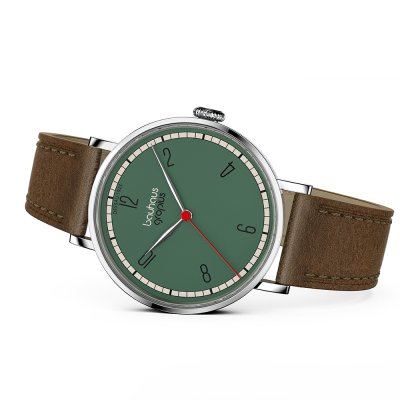 Diese Walter Gropius Uhr hat ein Edelstahl Gehäuse mit einem Durchmesser von 38 mm und ist mit einem Armband aus Leder versehen. In der Uhr arbeitet ein Miyota Uhrwerk. Das Glas der Uhr besteht aus Doppel antireflex Saphirglas - Glas.