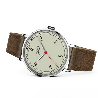 Diese Walter Gropius Uhr hat ein Edelstahl Gehäuse mit einem Durchmesser von 38 mm und ist mit einem Armband aus Leder versehen. In der Uhr arbeitet ein Miyota Uhrwerk. Das Glas der Uhr besteht aus Doppel antireflex Saphirglas - Glas.