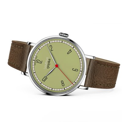 Diese Walter Gropius Uhr hat ein Edelstahl Gehäuse mit einem Durchmesser von 38 mm und ist mit einem Armband aus Leder versehen. In der Uhr arbeitet ein Miyota Uhrwerk. Das Glas der Uhr besteht aus Doppel antireflex Saphirglas - Glas.
