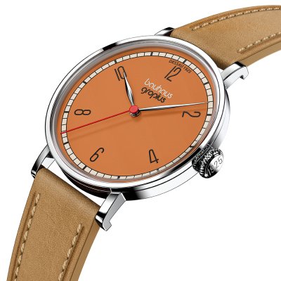 Diese Walter Gropius Uhr hat ein Edelstahl Gehäuse mit einem Durchmesser von 38 mm und ist mit einem Armband aus Leder versehen. In der Uhr arbeitet ein Miyota Uhrwerk. Das Glas der Uhr besteht aus Doppel antireflex Saphirglas - Glas.