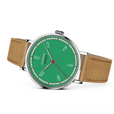 Diese Walter Gropius Uhr hat ein Edelstahl Gehäuse mit einem Durchmesser von 38 mm und ist mit einem Armband aus Leder versehen. In der Uhr arbeitet ein Miyota Uhrwerk. Das Glas der Uhr besteht aus Doppel antireflex Saphirglas - Glas.