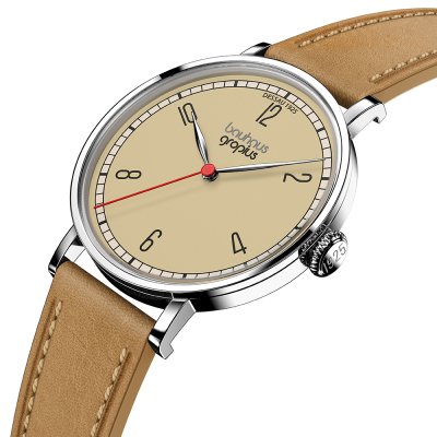 Diese Walter Gropius Uhr hat ein Edelstahl Gehäuse mit einem Durchmesser von 38 mm und ist mit einem Armband aus Leder versehen. In der Uhr arbeitet ein Miyota Uhrwerk. Das Glas der Uhr besteht aus Doppel antireflex Saphirglas - Glas.
