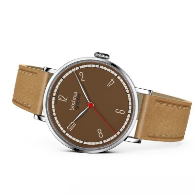 Diese Walter Gropius Uhr hat ein Edelstahl Gehäuse mit einem Durchmesser von 38 mm und ist mit einem Armband aus Leder versehen. In der Uhr arbeitet ein Miyota Uhrwerk. Das Glas der Uhr besteht aus Doppel antireflex Saphirglas - Glas.