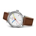 Diese Walter Gropius Uhr hat ein Edelstahl Gehäuse mit einem Durchmesser von 40 mm und ist mit einem Armband aus Leder versehen. In der Uhr arbeitet ein Seiko Instruments Inc. Uhrwerk. Das Glas der Uhr besteht aus Doppel antireflex Saphirglas - Glas.
