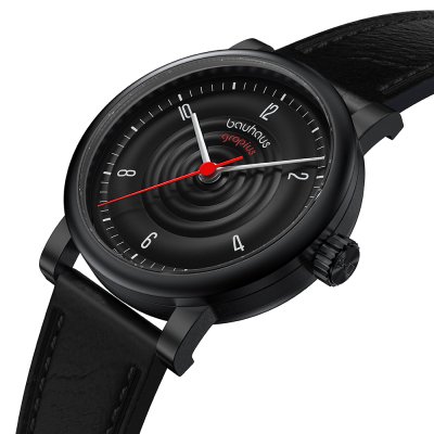 Diese Walter Gropius Uhr hat ein Edelstahl Gehäuse mit einem Durchmesser von 40 mm und ist mit einem Armband aus Leder versehen. In der Uhr arbeitet ein Seiko Instruments Inc. Uhrwerk. Das Glas der Uhr besteht aus Doppel antireflex Saphirglas - Glas.