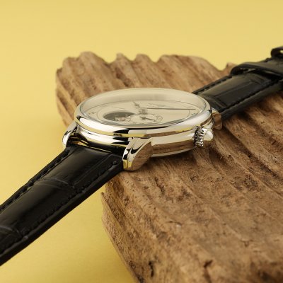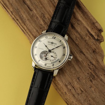 Diese Zeppelin Uhr hat ein Edelstahl Gehäuse mit einem Durchmesser von 40 mm und ist mit einem Armband aus Leder versehen. In der Uhr arbeitet ein Miyota Uhrwerk. Das Glas der Uhr besteht aus K1 Mineral - Glas.