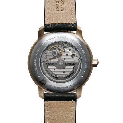 Diese Zeppelin Uhr hat ein Edelstahl Gehäuse mit einem Durchmesser von 40 mm und ist mit einem Armband aus Leder versehen. In der Uhr arbeitet ein Miyota Uhrwerk. Das Glas der Uhr besteht aus K1 Mineral - Glas.