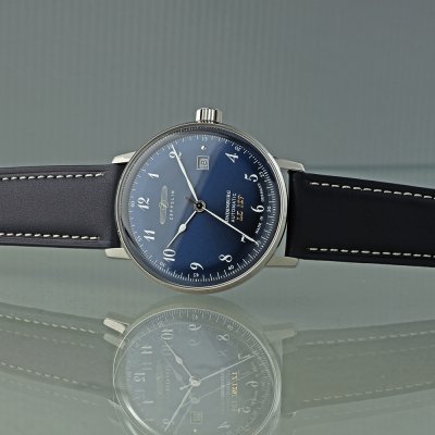 Diese Zeppelin Uhr hat ein Edelstahl Gehäuse mit einem Durchmesser von 40 mm und ist mit einem Armband aus Leder versehen. In der Uhr arbeitet ein Miyota Uhrwerk. Das Glas der Uhr besteht aus K1 Mineral - Glas.